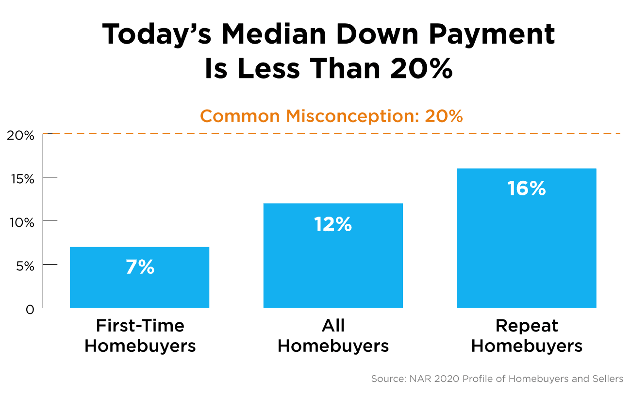 You may be eager to take advantage of today’s low mortgage rates, but the thought of needing a large down payment might make you feel like that goal is unachievable. Today, there’s still a common myth that you have to come up with 20% of the total sale price for your down payment. This means people who could buy a home may be putting their plans on hold because they don’t have that much saved yet. The reality is, whether you’re looking for your first home or you’ve purchased one before, you most likely don’t need to put 20% down. Here’s why...