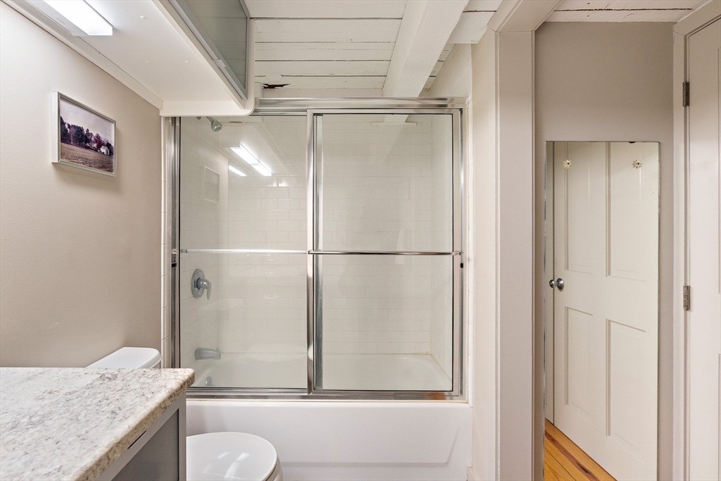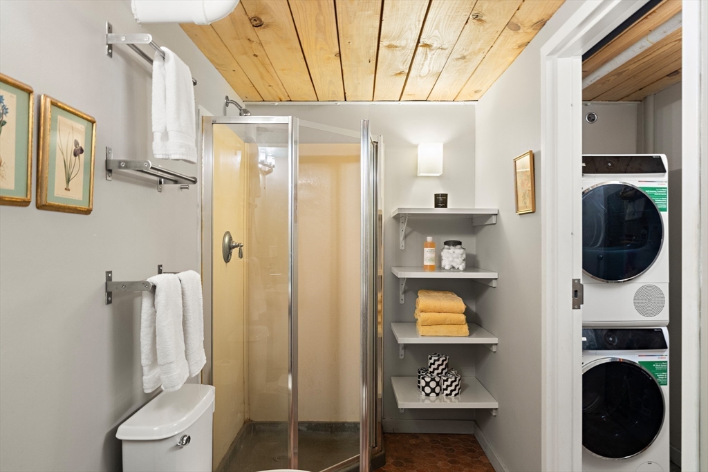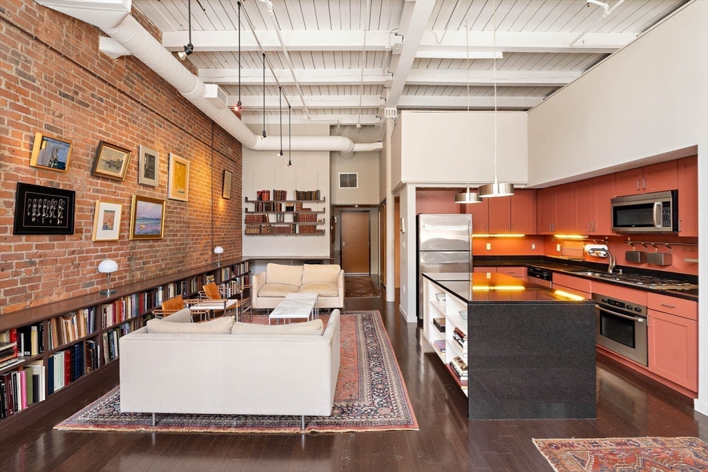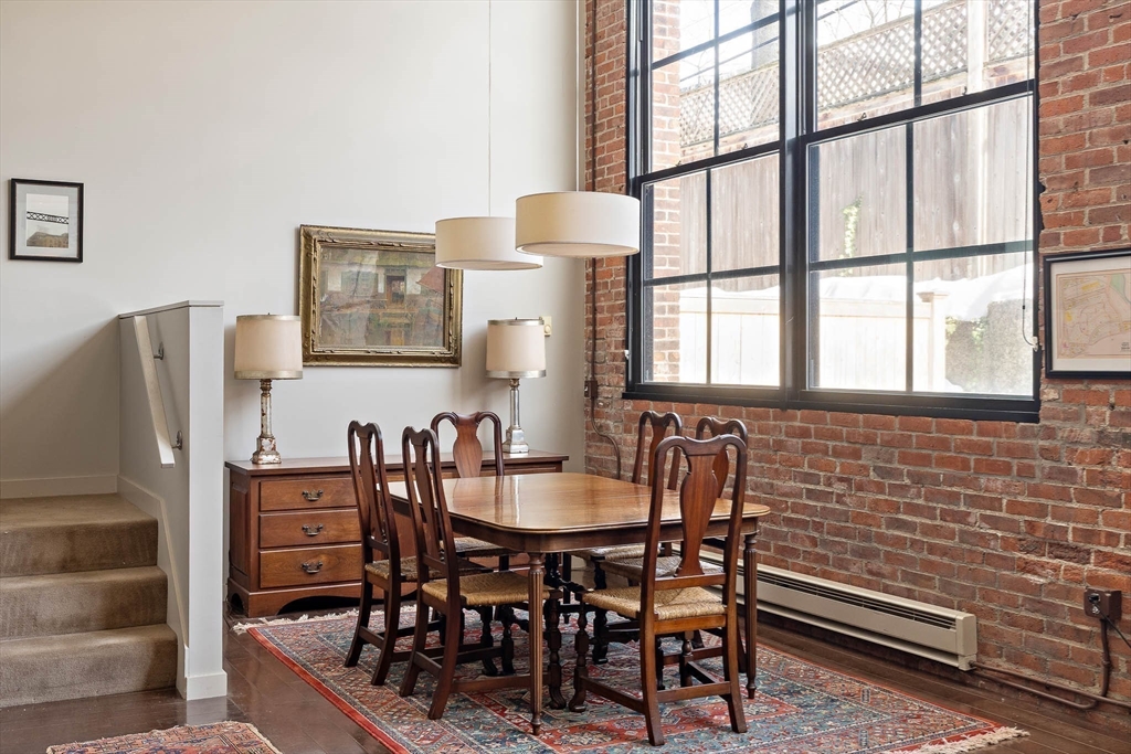 A true Cambridge loft, this 2+ bedroom home at 1 Aberdeen Way offers soaring 15-foot ceilings, a full wall of windows, and exposed brick for an open, modern feel. The main level includes a large living/dining area, a well appointed kitchen, and direct access to a private outdoor patio. A second bedroom and a separate study with a closet provide flexible space for guests, a tv room, or work.Upstairs, the primary suite overlooks the main living area and includes an en suite bath and generous storage. A second full bathroom and in unit laundry add convenience. The unit also features a private entrance to the bike trail, locked bike storage, and two deeded off street parking spaces.Located in Strawberry Hill, it's a short walk to Fresh Pond, Mount Auburn Cemetery, and Huron Village, offering easy access to trails, shops, and West Cambridge amenities.