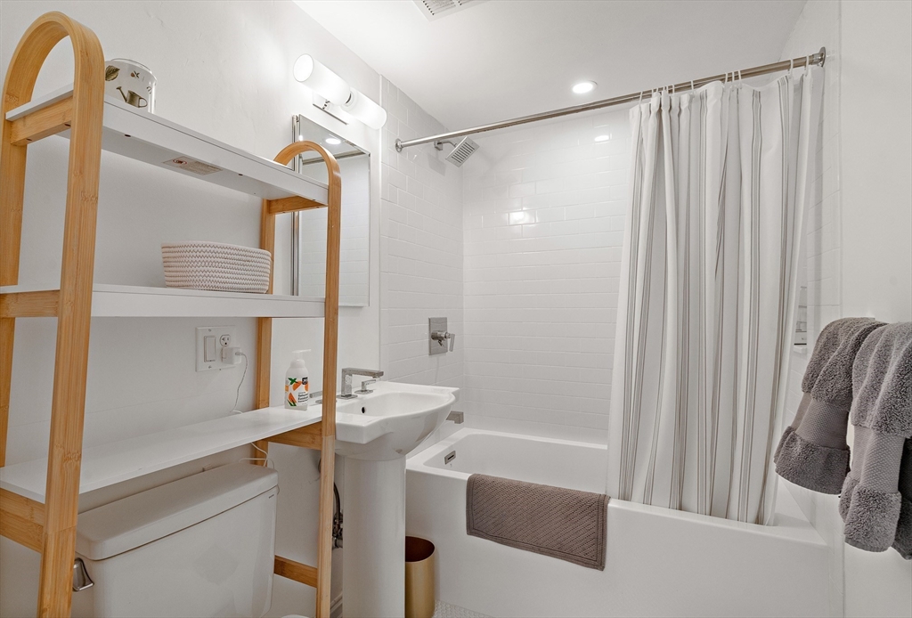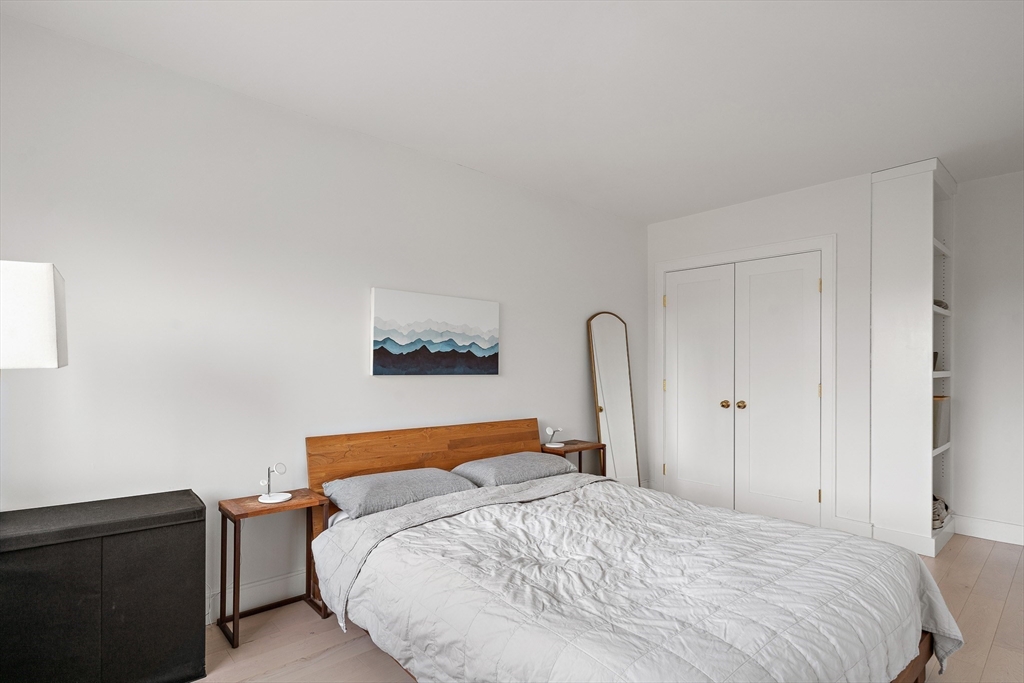 Just moments from Harvard Square, this fully renovated mid-century residence has been thoughtfully reimagined with no expense spared. Updates include new plumbing and electrical to current code, new heating and cooling systems, enhanced insulation for energy efficiency and soundproofing, and refined finish carpentry throughout. The home features wide-plank hardwood floors, designer lighting, solid brass hardware, custom built-ins, and a restored Art Deco working fireplace. The open kitchen and baths are entirely new, finished with high-end cabinetry, premium appliances, and elegant marble and tile. Located on the sixth floor, the unit offers rare four exposures, exceptional natural light, and a large southwest-facing private patio accessible from both the living room and kitchen. Additional amenities include in-unit laundry, assigned parking, elevator access, professional management, and an on-site superintendent. Private storage in basement