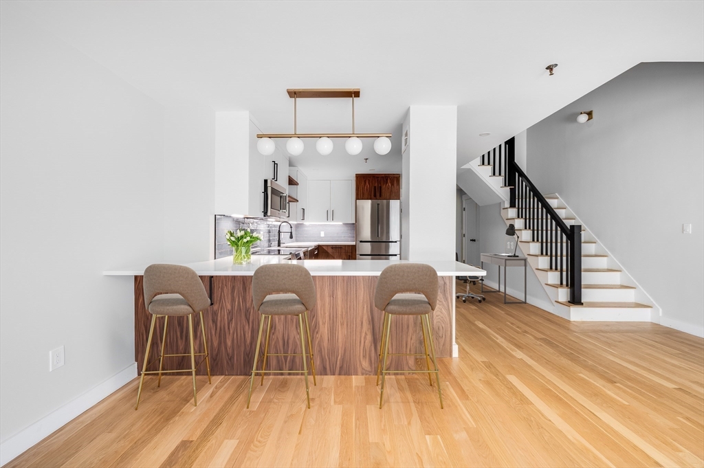 Welcome to Crossroads on the Charles, luxury living at its finest! Located at the large bend in the river, this newly renovated 2-bed, 2 1/2 bath condo offers stunning views of Boston and the Charles River. Conveniently located just outside of Camb. walking distance to Harv. Sq, with easy access to Boston and down the street from the exciting new Arsenal Yards Project. This luxurious full-service building offers a concierge, professional management, indoor heated pool, and multiple outdoor patios. This 2 story residence has been completely renovated with modern finishes. 1400 sq. ft. w/oak floors throughout. Large open liv/dining-rm area with sliders leading to a large, private terr. overlooking the river. An updated kitchen with walnut and white custom cabinetry, all new stainless appliances, and half ba. on the 1st flr. The 2nd flr has a primary bdrm with beautiful views of the river and ensuite bathroom, and a spacious laundry room. 2 car gar spaces