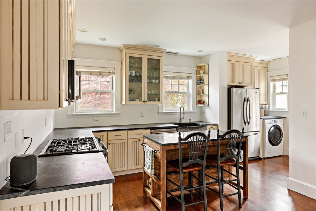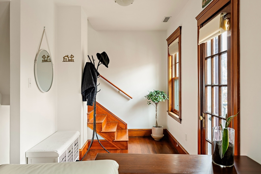 Step into this charming West Cambridge duplex, where classic elegance meets modern comfort. The first level features a formal living room with a cozy fireplace, a dining room with a built-in cabinet, and a bright open kitchen with stainless steel appliances, all graced with hardwood floors. Two bedrooms and a full bath complete this level, along with a convenient washer/dryer. Upstairs, the thoughtfully designed primary suite offers a private walk-in closet, en-suite bath, and a cozy sitting area perfect for a nursery or office. Enjoy 2-zone central AC, gas heat, skylights, private porch, deck, and balcony. Deeded garage parking, extra off-street space, and basement storage complete the package. Minutes to Harvard, Fresh Pond, boutique shops, Whole Foods, transit, and bike trails, an unbeatable West Cambridge location.